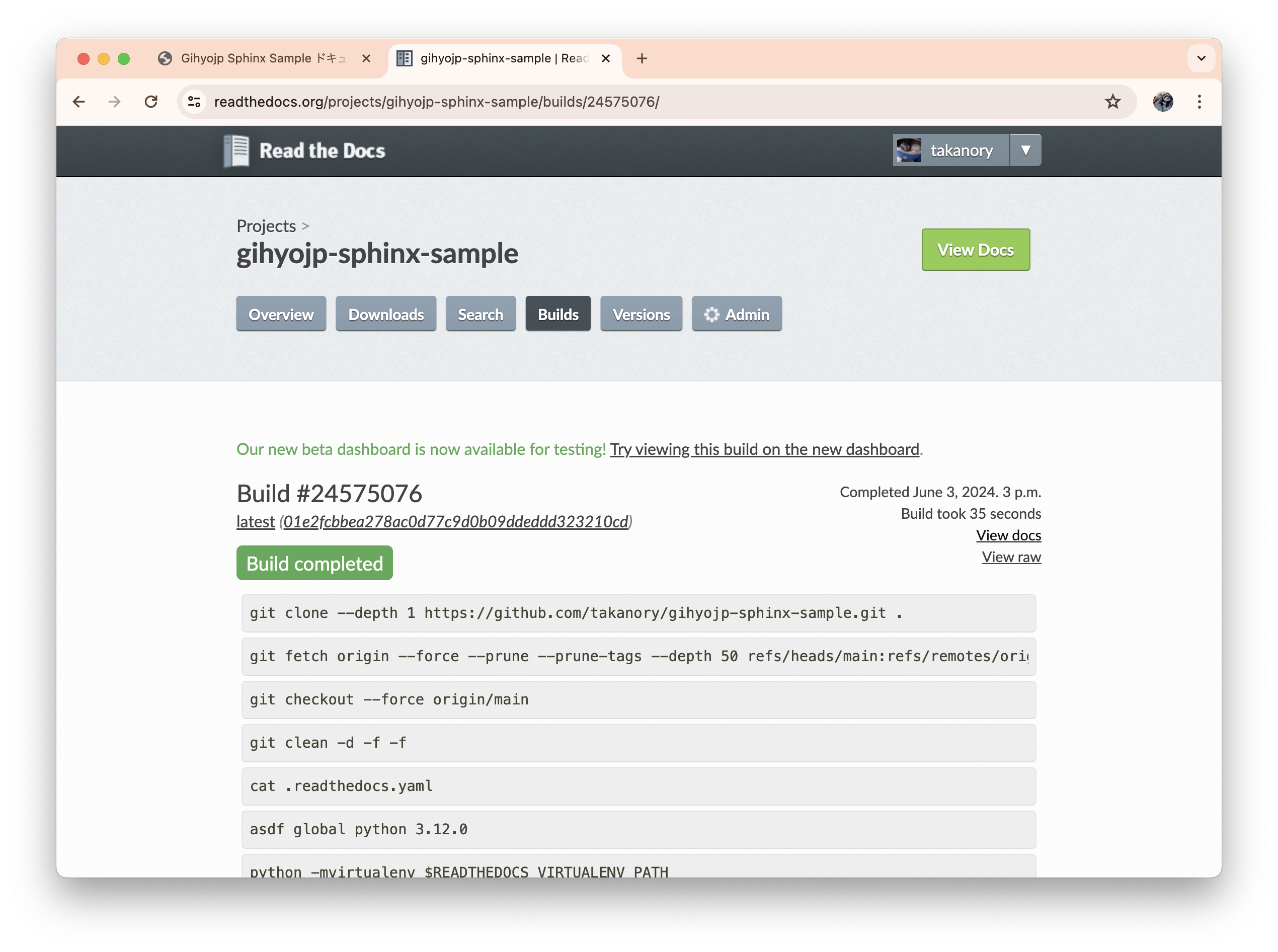 2024年6月: Python製静的サイトジェネレーターSphinxでWebサイトを構築して公開(takanory)